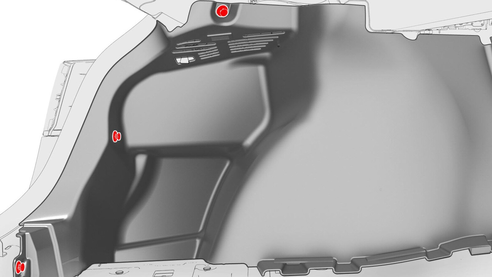 - 松开将行李箱 LH 侧饰板的后部固定到车辆的推拉式夹 (x3)。