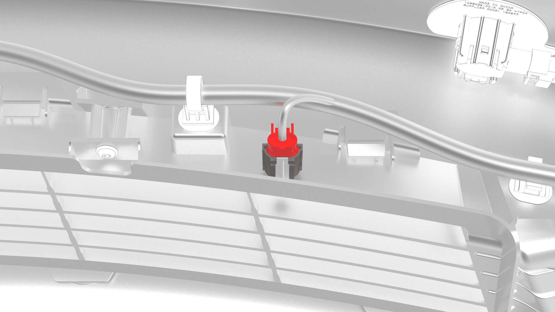 松开将环境空气温度传感器固定到下部格栅的夹子,然后从下部格栅上拆下传感器。