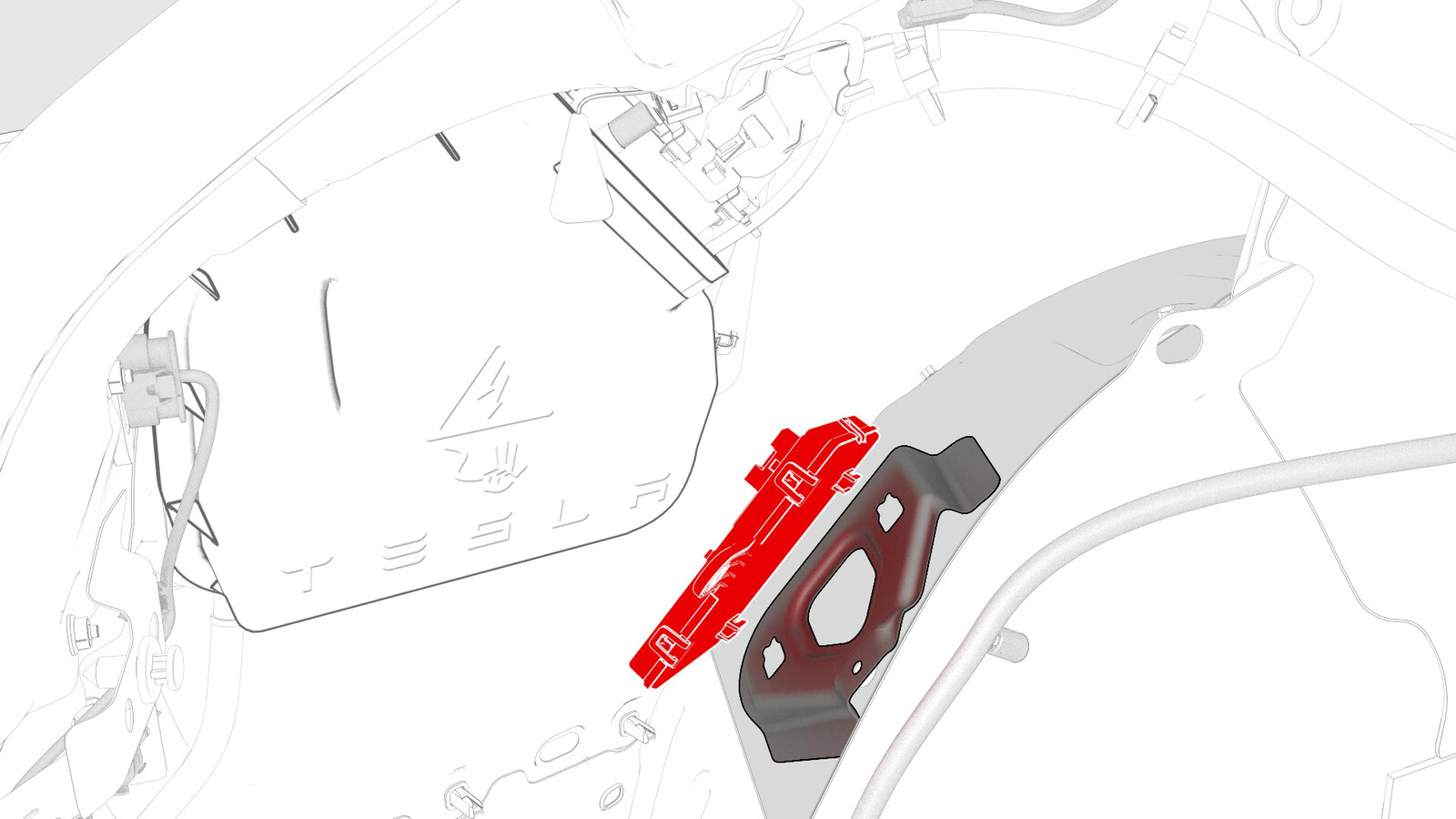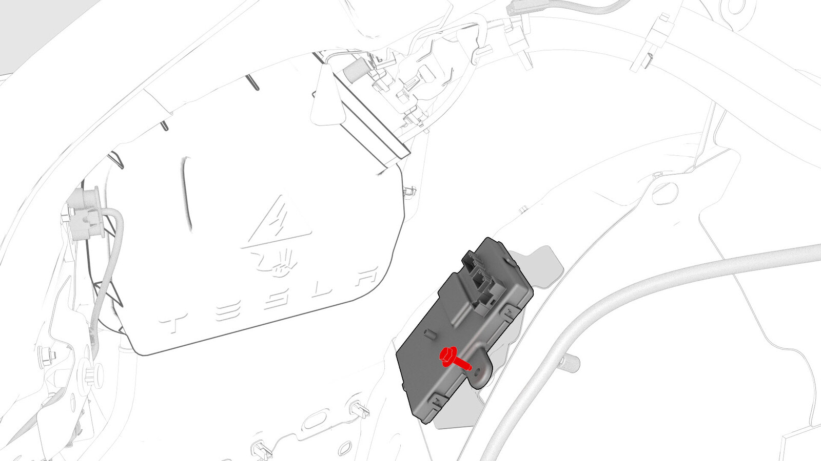 5.5 Nm (4.1 lbs-ft) - Slide the charge port ECU to the right to release the tabs (x2) that attach the ECU to the body, and then remove the old ECU from the vehicle.