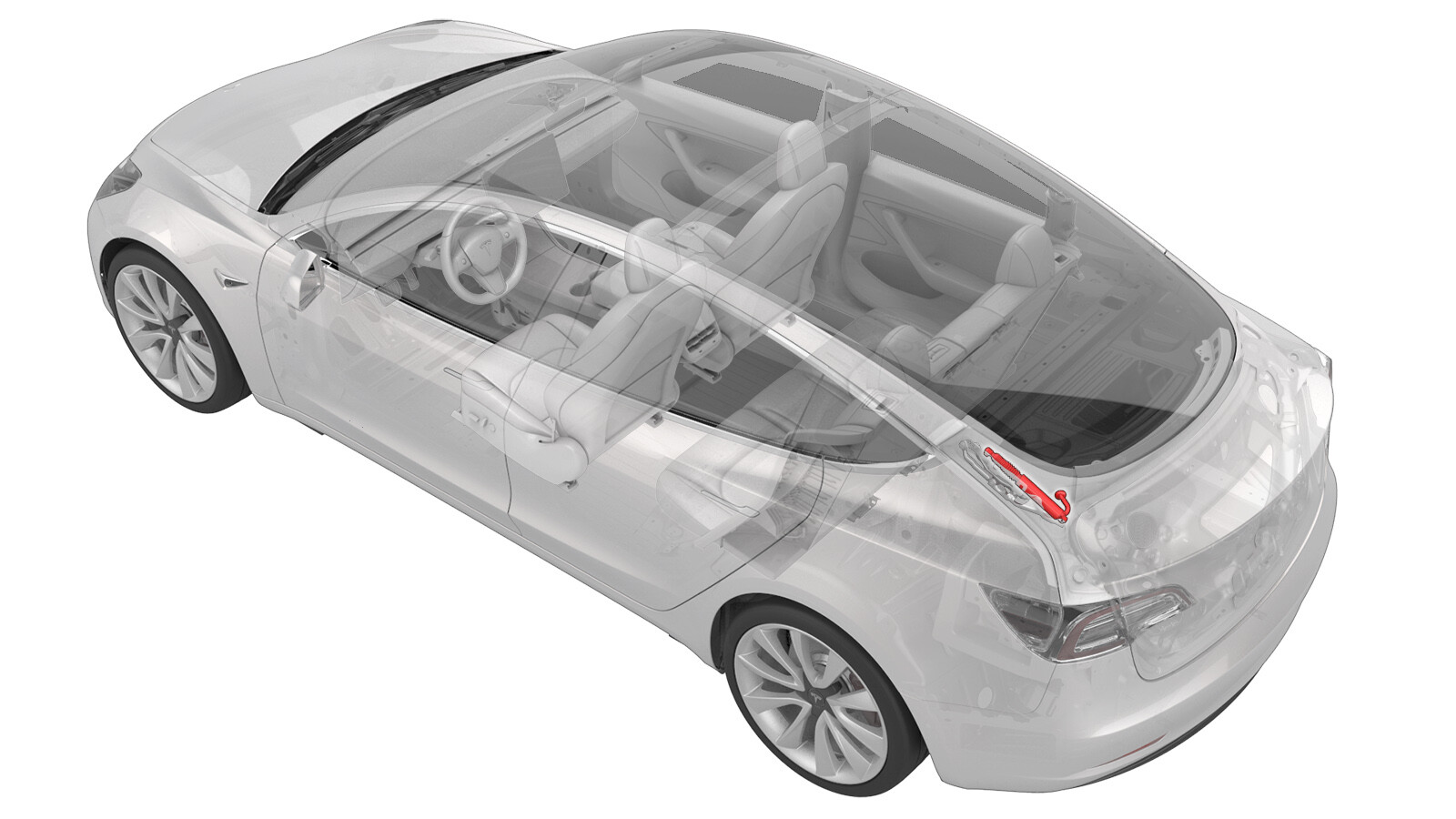 - 在车身内推行李箱电动支杆橡胶索环。