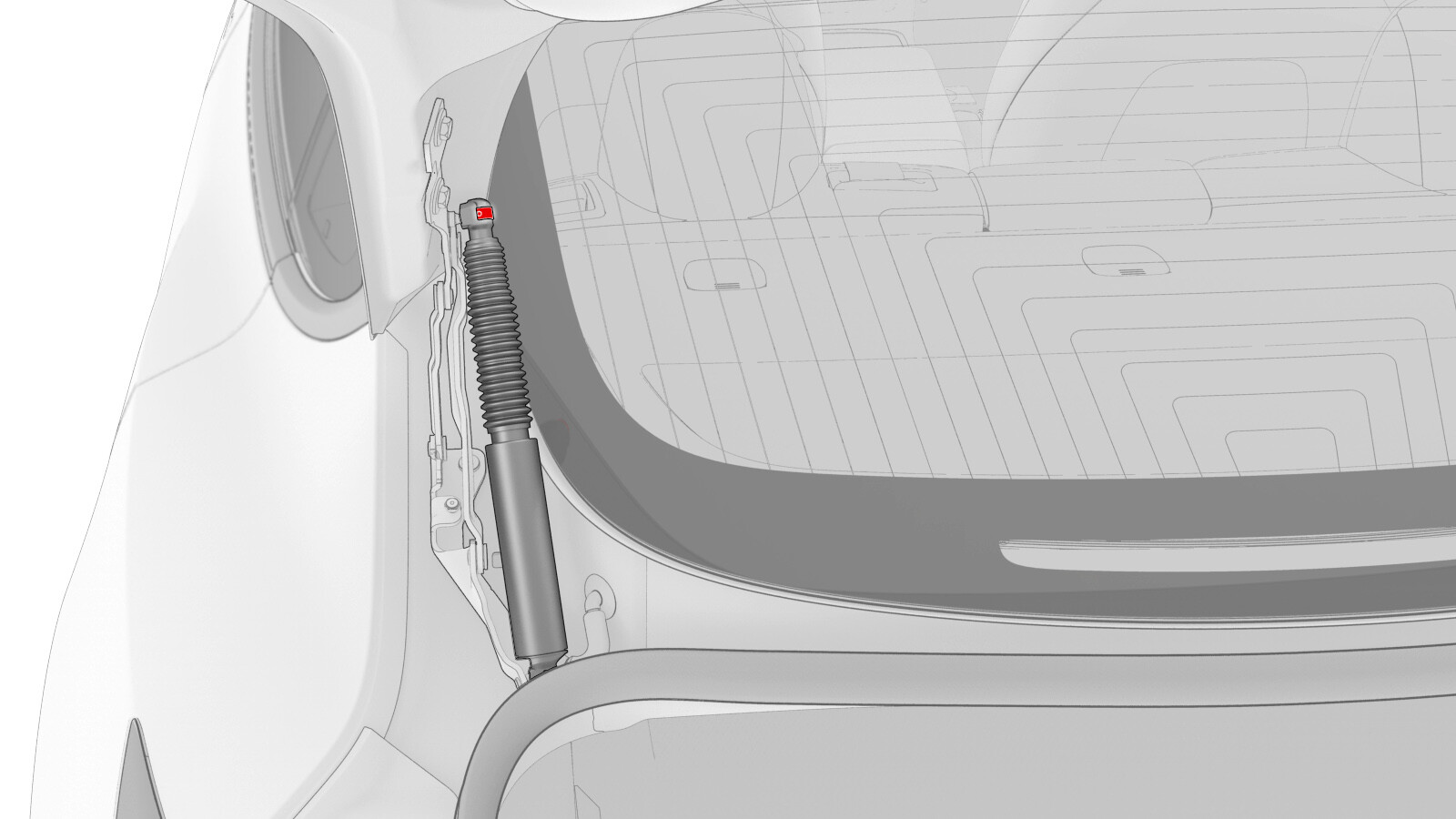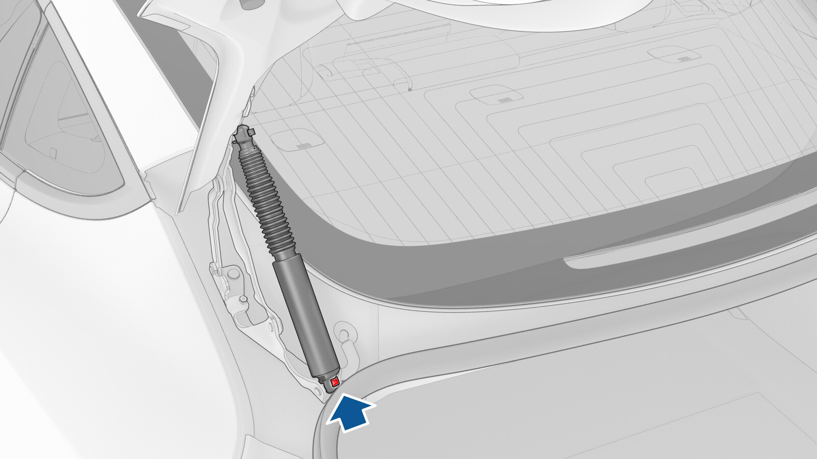 警告确保将电源支柱末端固定到行李箱的夹子牢固地固定,以避免支柱松动和损坏。