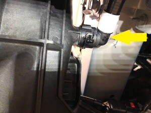 - 松开弹簧夹,断开散热器出口软管与散热器的连接,等待冷却液排出,然后堵住两个接头。