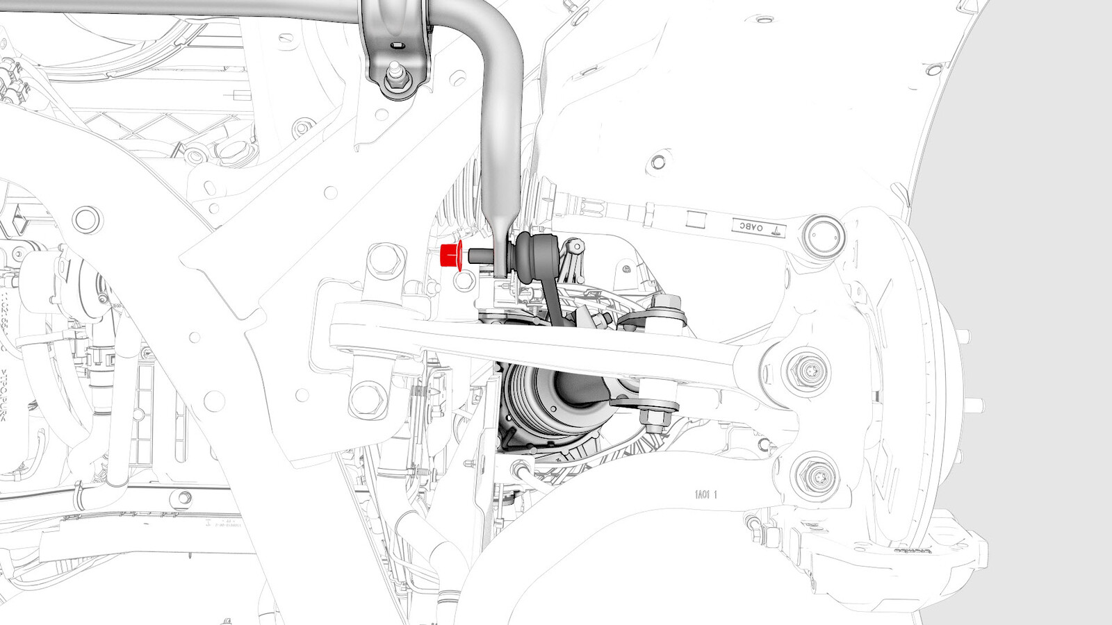 拆下并弃用将前平衡杆固定到 LH 和 RH 前平衡杆连杆的螺母,然后将前平衡杆连杆移到一旁。
