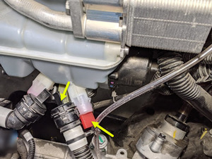 - 可通过PT Thermal选项卡下的 “Garage” 监测速度。如果速度在 7000 RPM 左右徘徊,则说明泵存在气锁状况。请重新执行真空加注。继续添加冷却液并排空空气,直至冷却液液位介于罐上的 NOM 与 MAX 线之间。