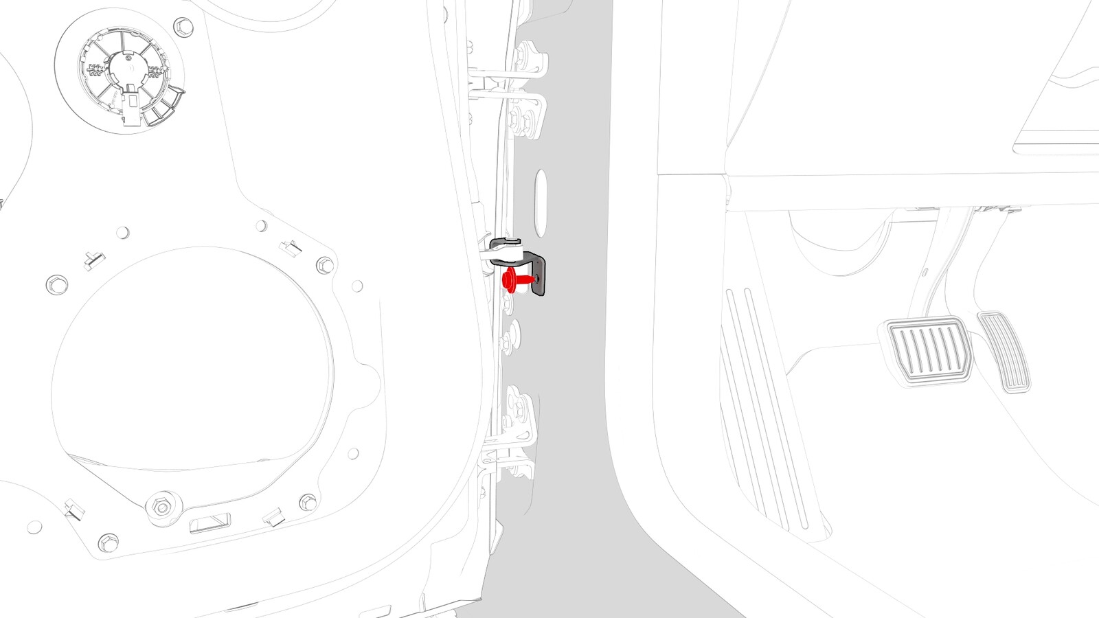- 手伸进扬声器支架开口中,从车上拆下限位器。