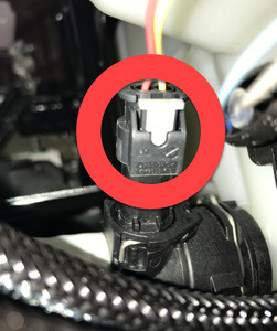 - Disconnect the electrical harness from the Superbottle to powertrain coolant supply hose temperature sensor connector.