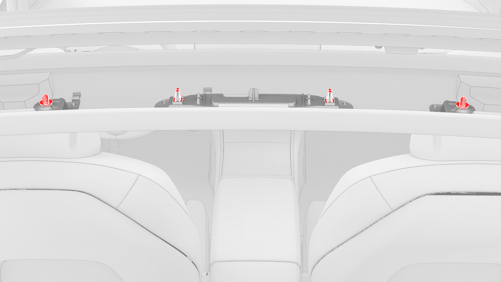 - 打开 LH 和 RH 挂钩盖,然后松开将螺钉套固定到 LH 和 RH 衣帽钩的夹子。