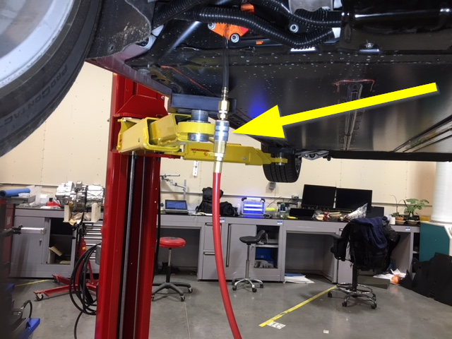 - 打开入口阀,然后从 LH 高压电池柱总成中的泄漏测试适配器中断开电池组外壳泄漏测试仪。