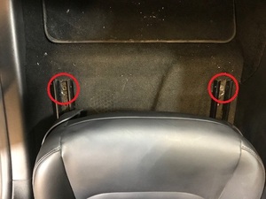 Move the RH front seat forward, and then remove and discard the RH front seat rear fasteners (x2).