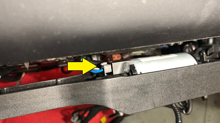 - Use a clip prytool to remove the harness clips (x2) from the RH front seat track motor.