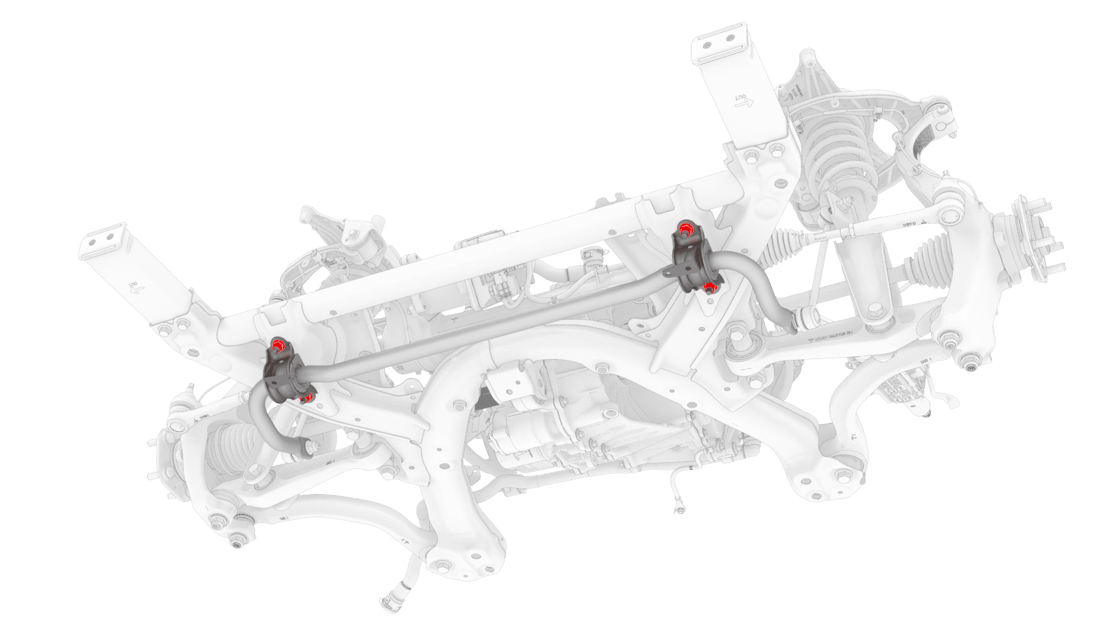 - 在助手的帮助下,拆下并弃用将前平衡杆固定到前副框架的螺母,然后从副框架上拆下平衡杆。