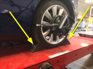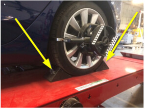 注在驾驶侧后部轮胎的两侧放置轮挡