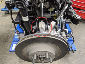 将轮毂轴承千斤顶适配器安装到左后轮毂轴承上