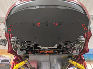拆卸用于固定电池外壳后车底护板的下部螺栓