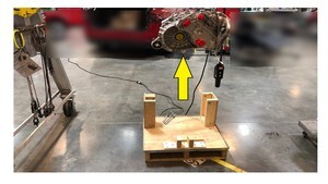 - 放置并升起支架,以在行驶高度模拟左后悬架
