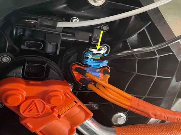 - 使用异丙醇 (IPA) 湿巾清洁高压电池仓处的充电接口母排高压接头,然后等待风干 1 分钟。