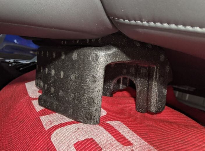 - 放倒第二排左侧座椅靠背,将 12V 泡沫盖放在座椅靠背下方,以留出间隙。