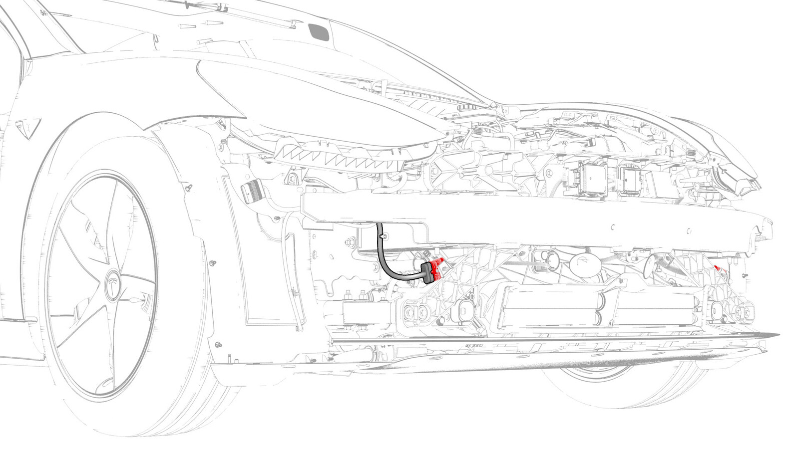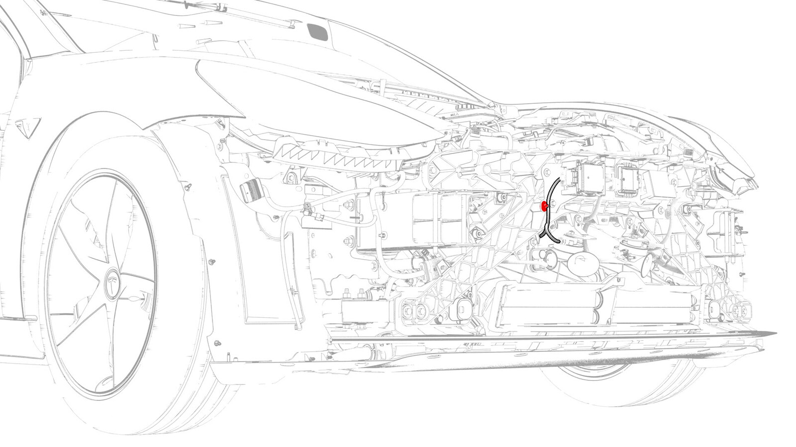 - 将电气线束连接到左侧前端支架电气连接器上。