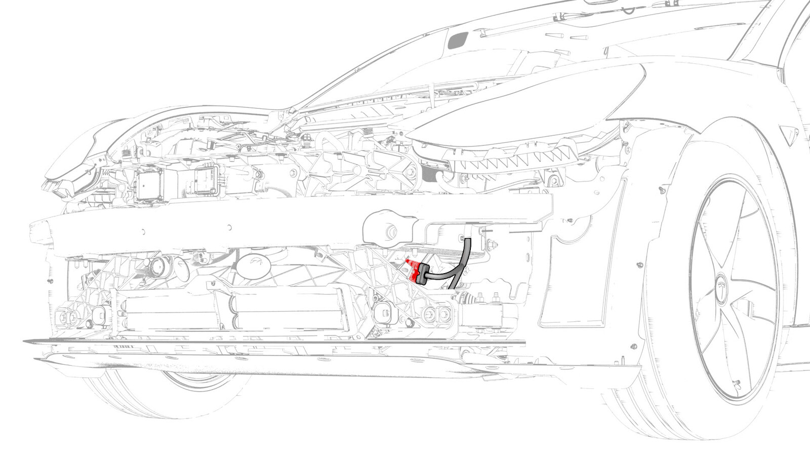 - 拆下前备箱储物单元。请参阅 前备箱储物单元(拆卸和更换)。