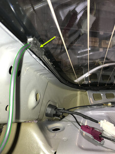 Disconnect the RH antenna filter harness connector from the heater grid, and then remove the harness from the vehicle.