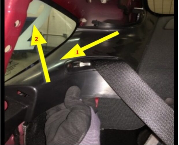 - Remove the LH upper C-pillar trim. See 饰板 - C 柱 - 上 - LH(拆卸和更换).