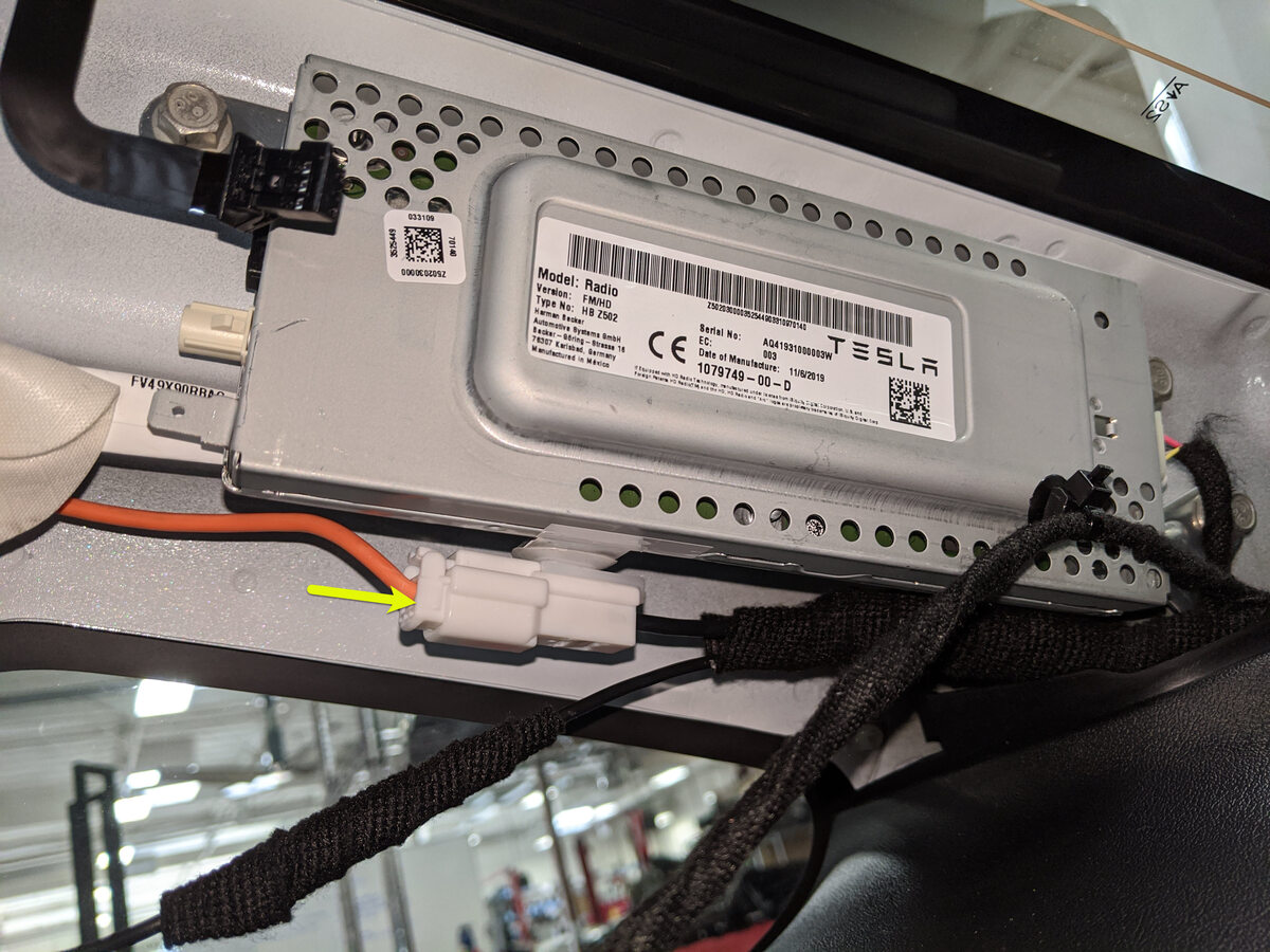 - Connect the RH antenna filter harness connector to the tuner and body harness.
