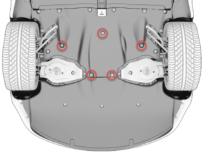 安装将中间流线型护板后部固定到后副车架的螺栓(5 个)。