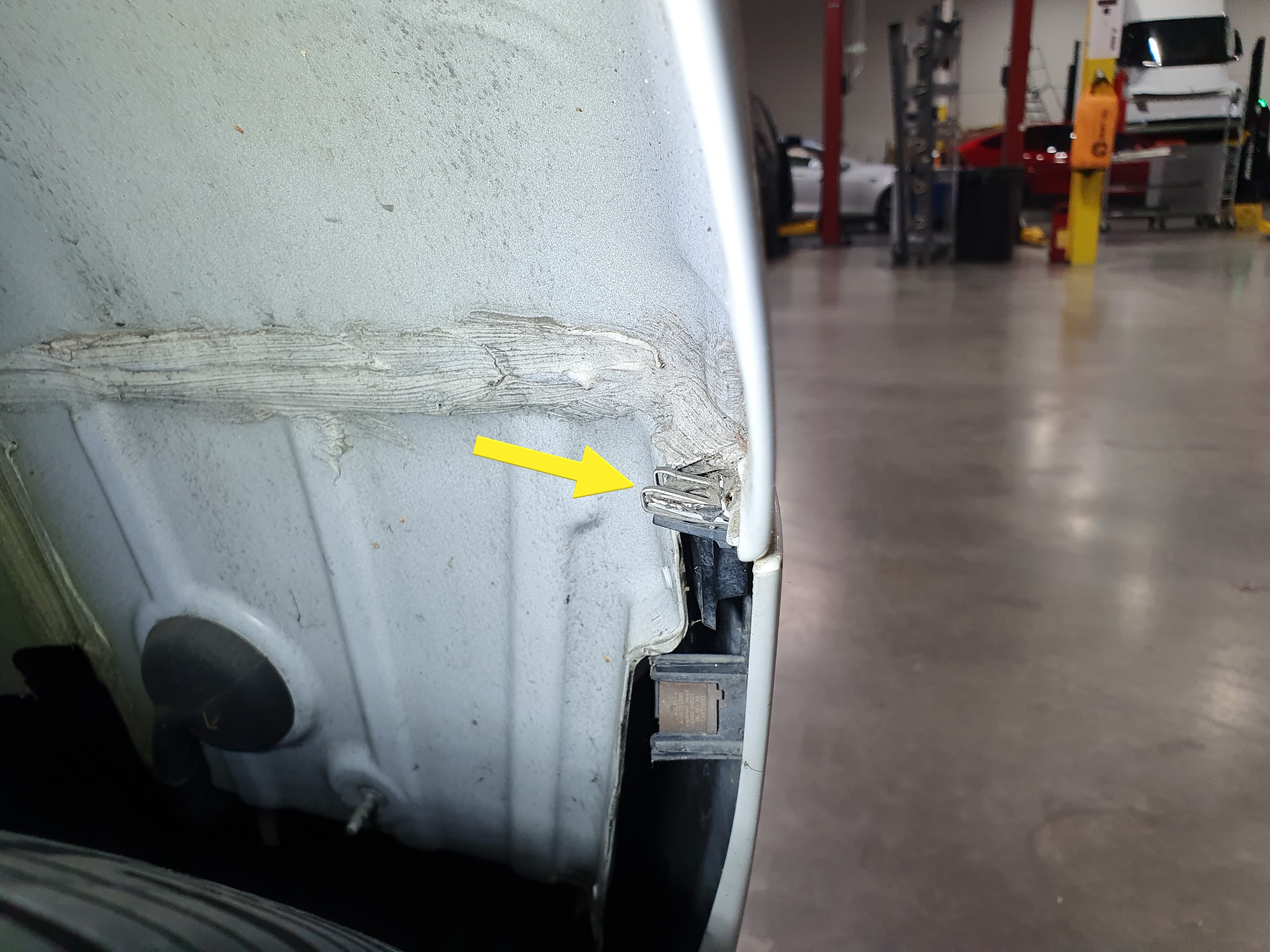 - 紧固卡子(3 个),然后安装将左后轮拱内衬后部固定到车身的卡扣式螺母。