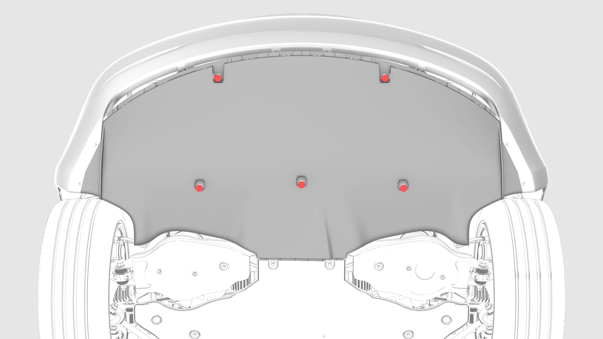 - 在将中间流线型护板固定到车辆的螺栓的螺纹上,涂抹一小滴螺纹胶。
