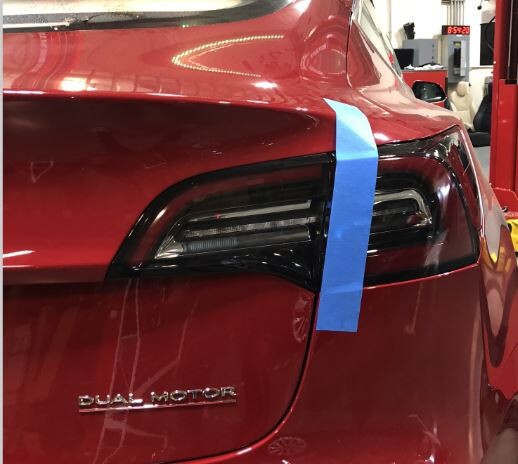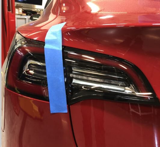 - 沿 LH 和 RH 尾灯的内部边缘粘贴遮蔽胶带。