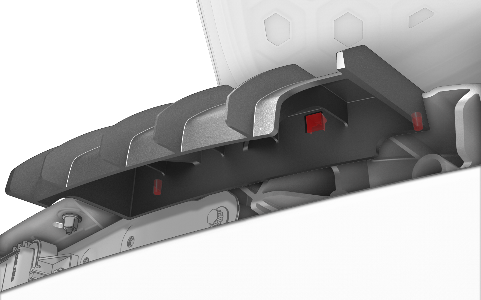 - 锁定锁片 (x1),将饰板加固件安装到支架前端。