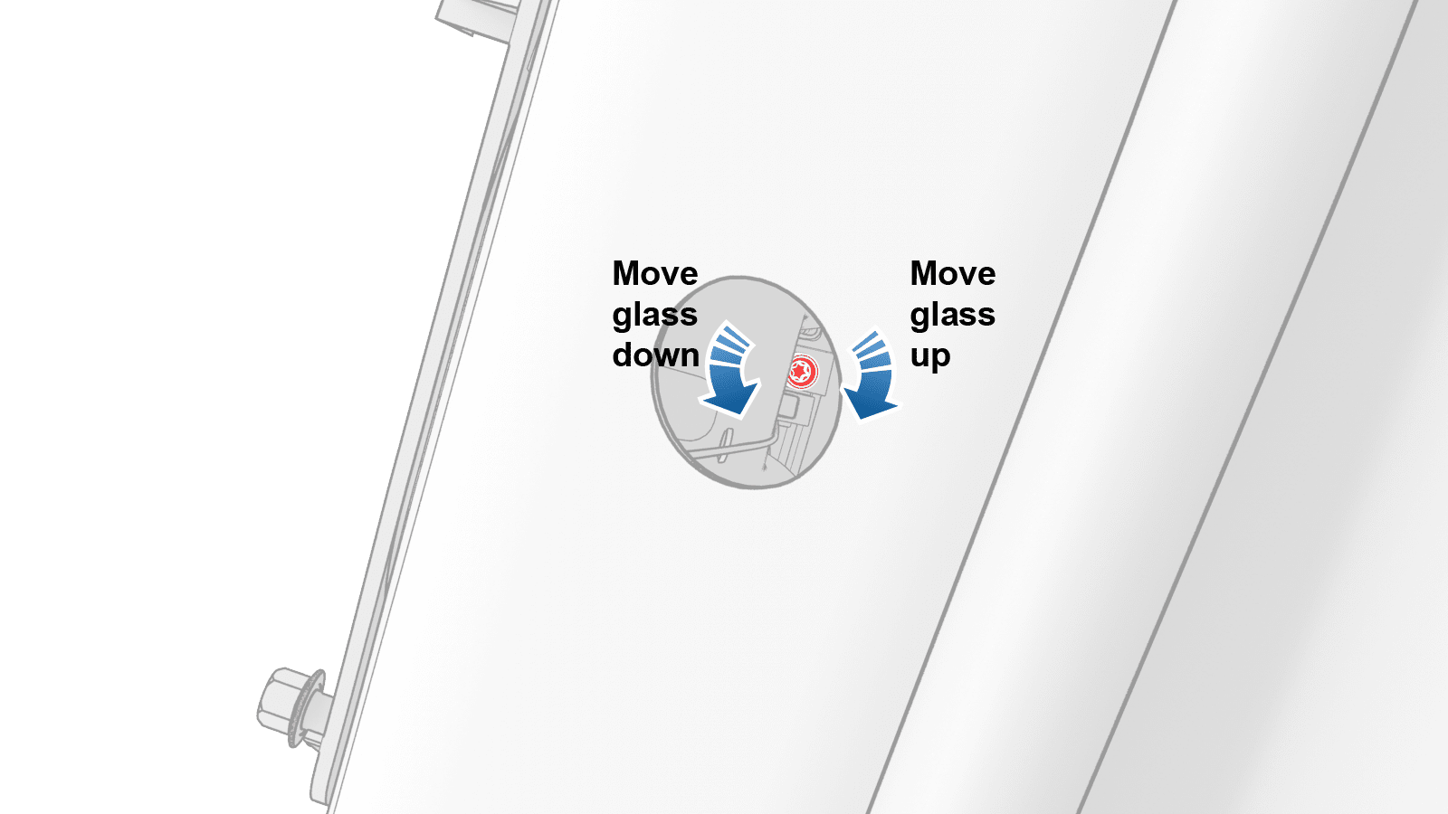- 调节车窗玻璃的位置,然后手动拧紧螺栓。