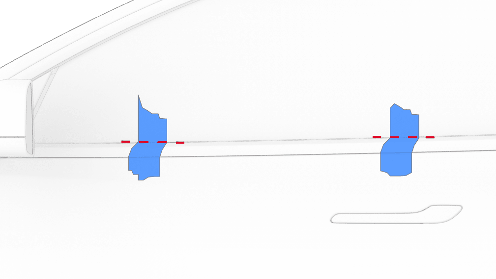 - 使用间隙和齐平度工具检查左前车窗玻璃的装配情况。