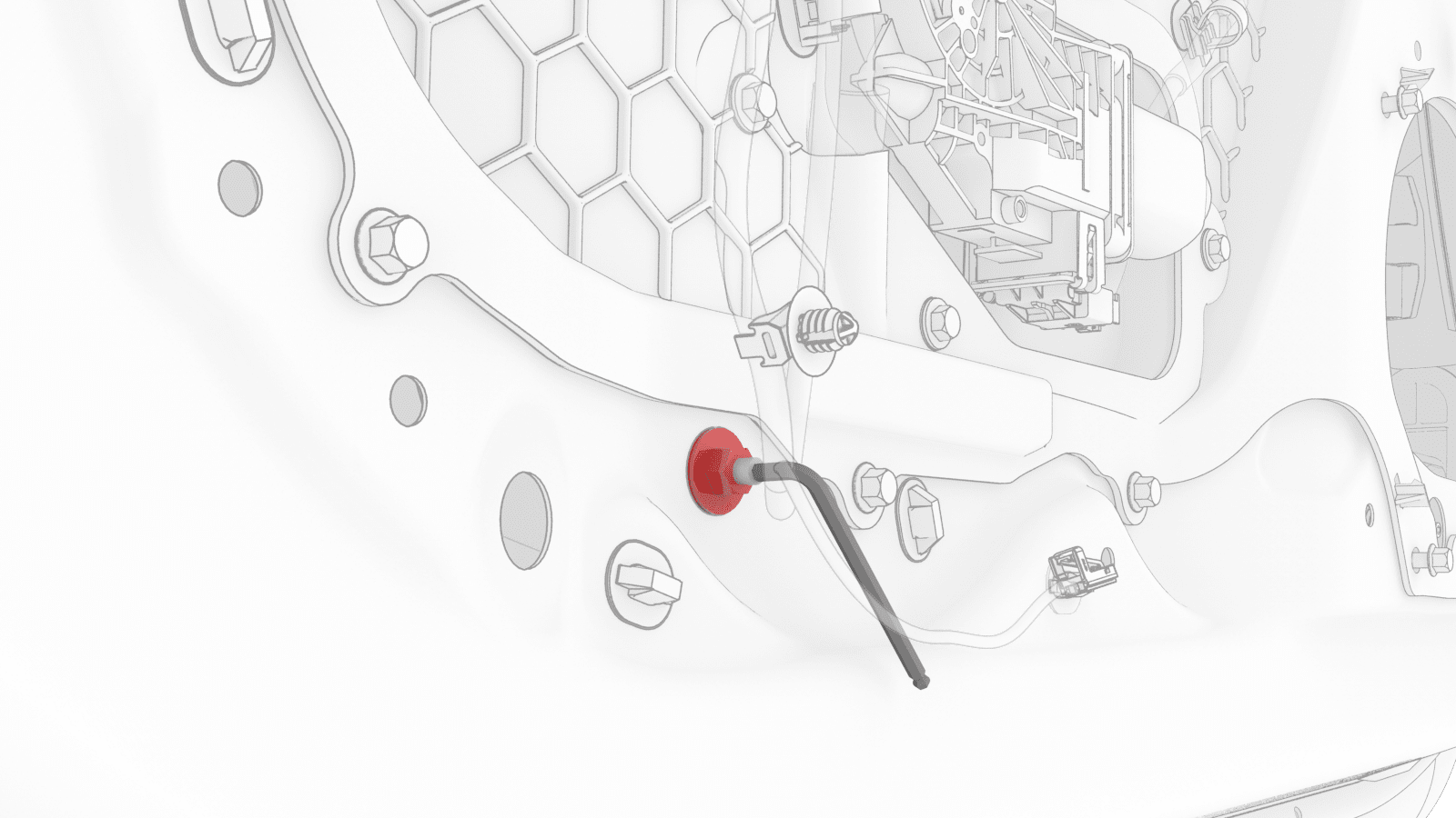 - 松开将车窗玻璃固定到升降器隔离夹的螺栓,将其拧松半圈。