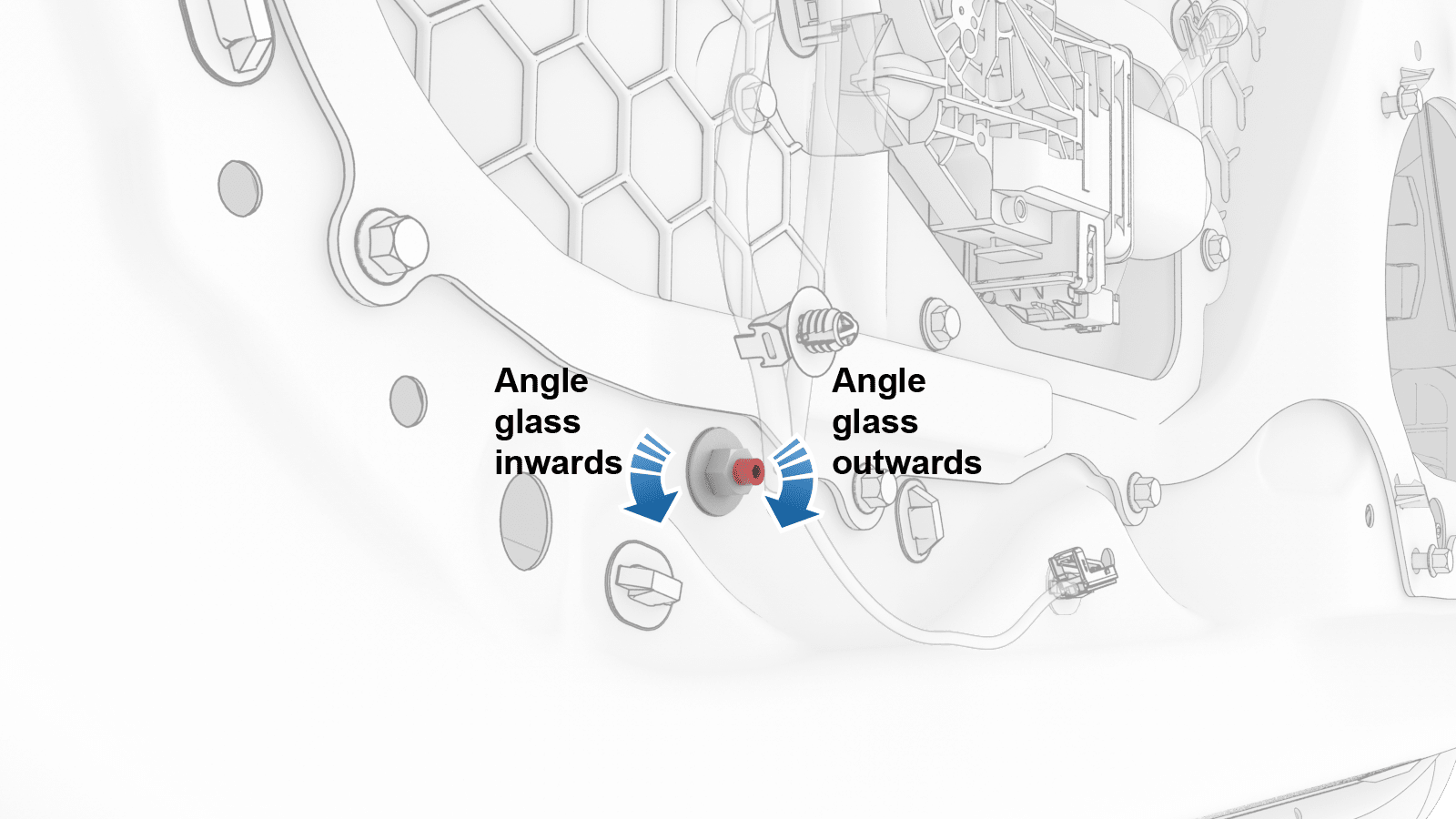 - 如果无法通过调节隔离夹将玻璃装配调至规格范围内,则执行下一步骤。