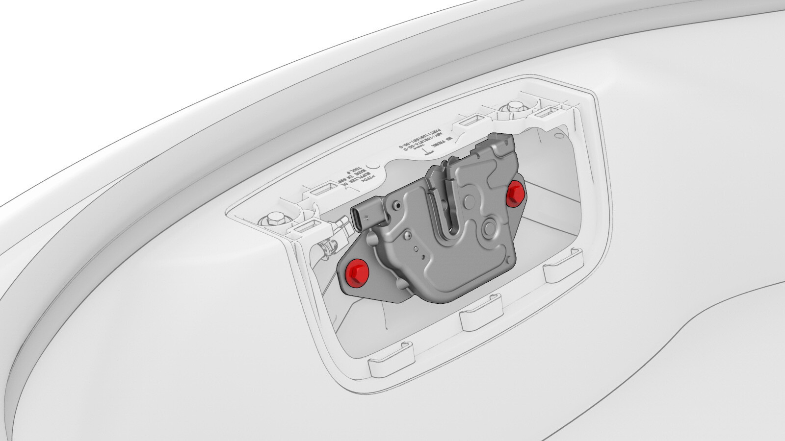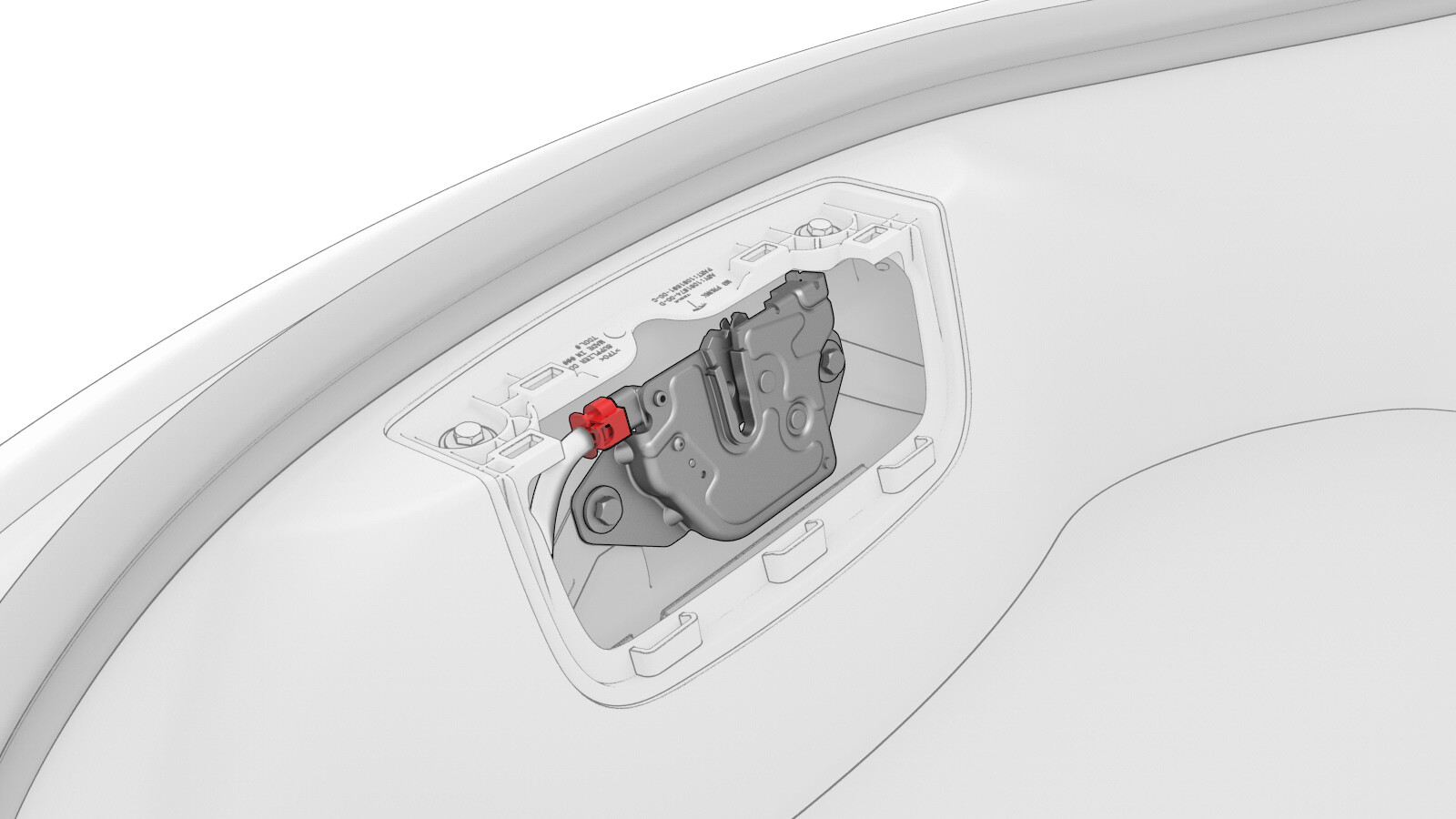 在将电气线束连接到前备箱盖锁时: 将红色锁片推向连接器以接合锁止机构。切勿向下按压或向上拉动红色锁片。