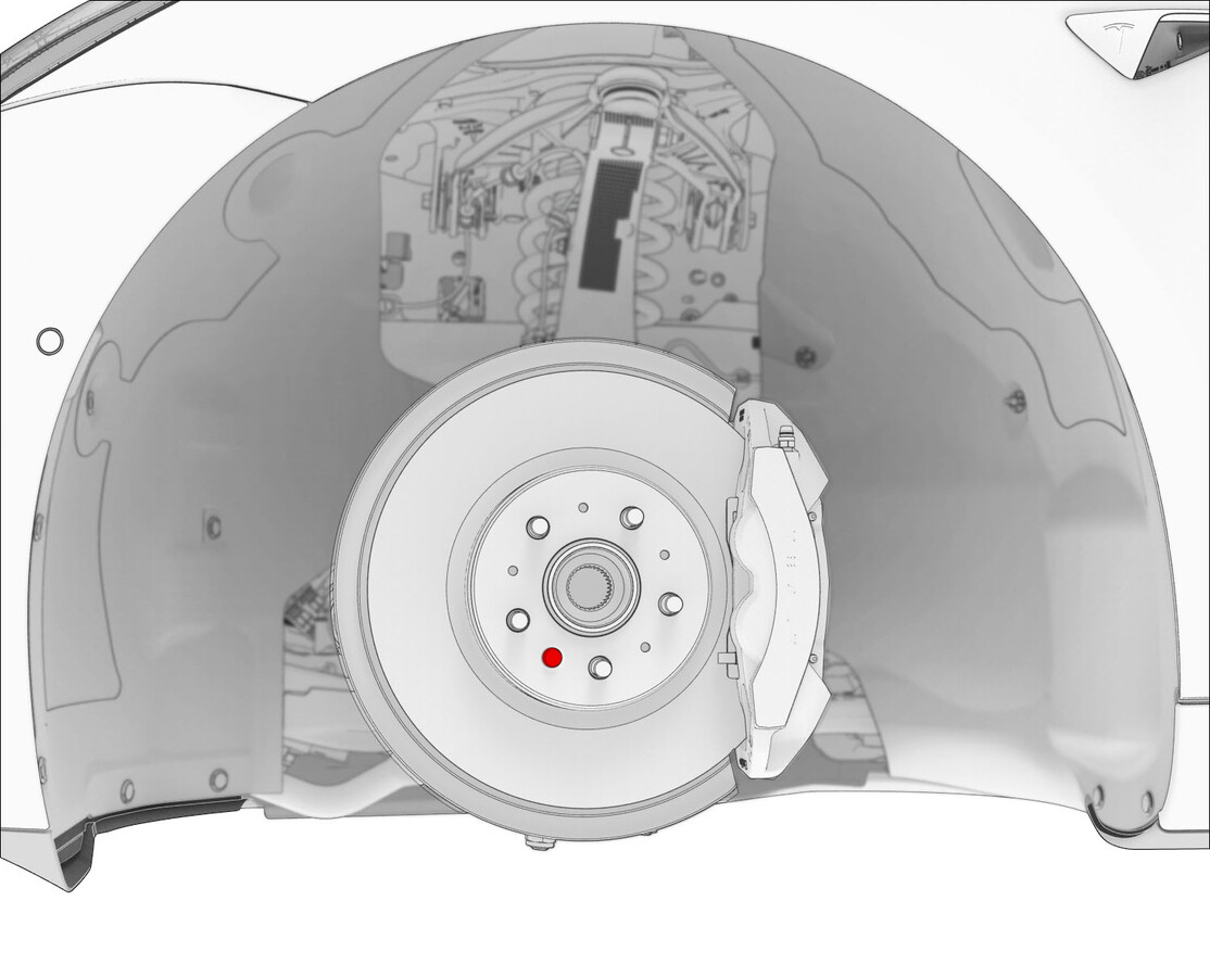 - 使用磁场观察卡检查左前轮毂的调节环。