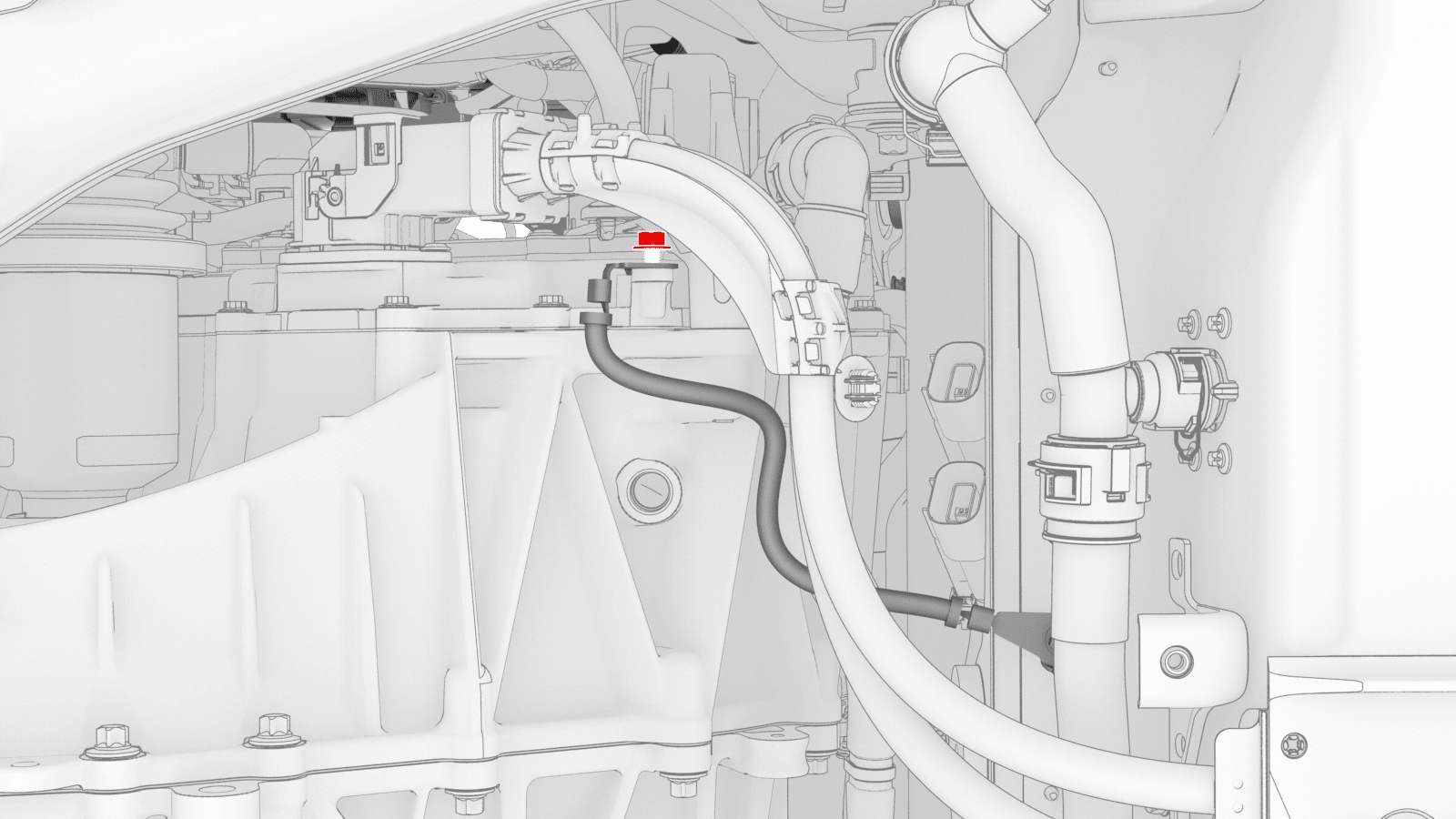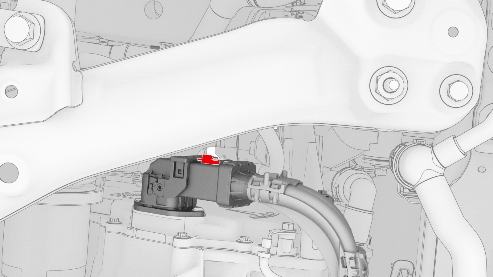 10 Nm (7.4 lbs-ft) - 滑动红色释放锁片以解锁前驱动单元高压线束连接器。