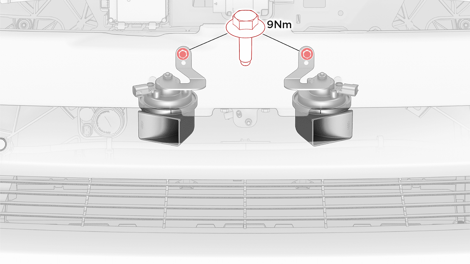 拆下将高音喇叭固定到支架的螺栓,然后从车上拆下喇叭。