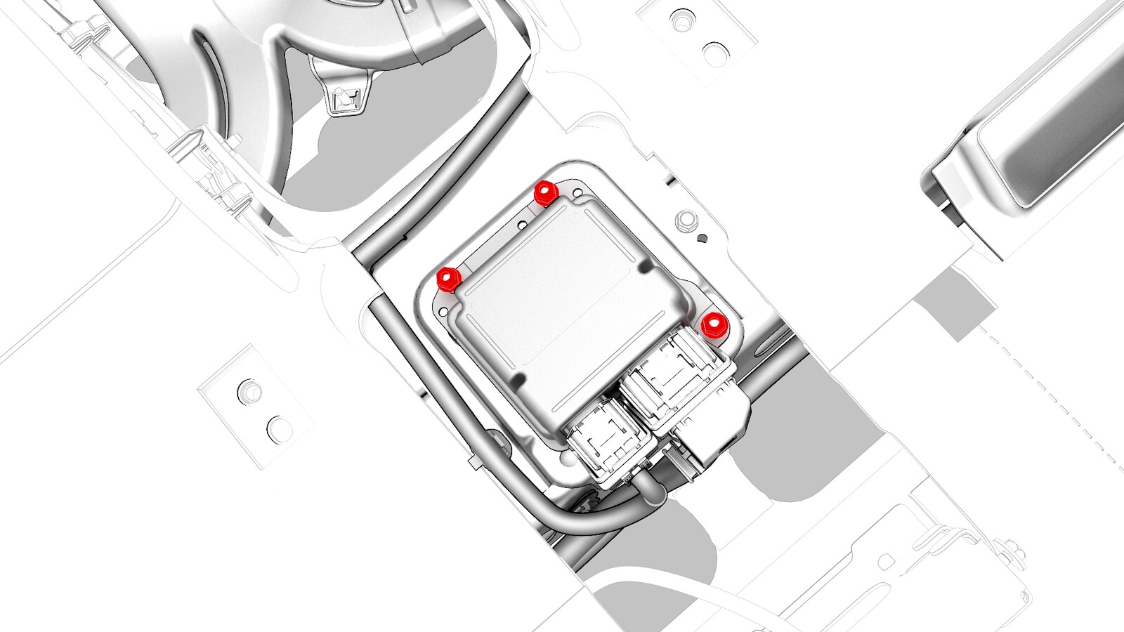 将约束控制模块安装到车身上,然后安装新的螺母(3 个),将模块固定到车身。
