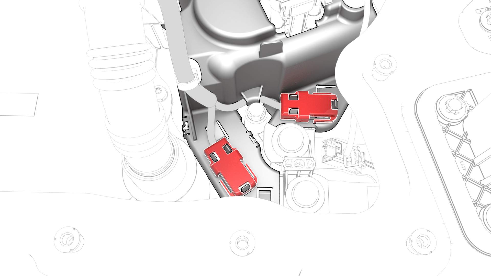 - 抬高高压控制器,将保险丝检修口绝缘体安装到右侧高压电池仓母排盖板上,紧固将绝缘体固定到盖板的卡子,然后降下高压控制器。