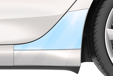 切勿让薄膜的任意部位伸出车辆边缘。不要将薄膜粘贴在门槛板和围板之间的车身线条上(双向折弯)。