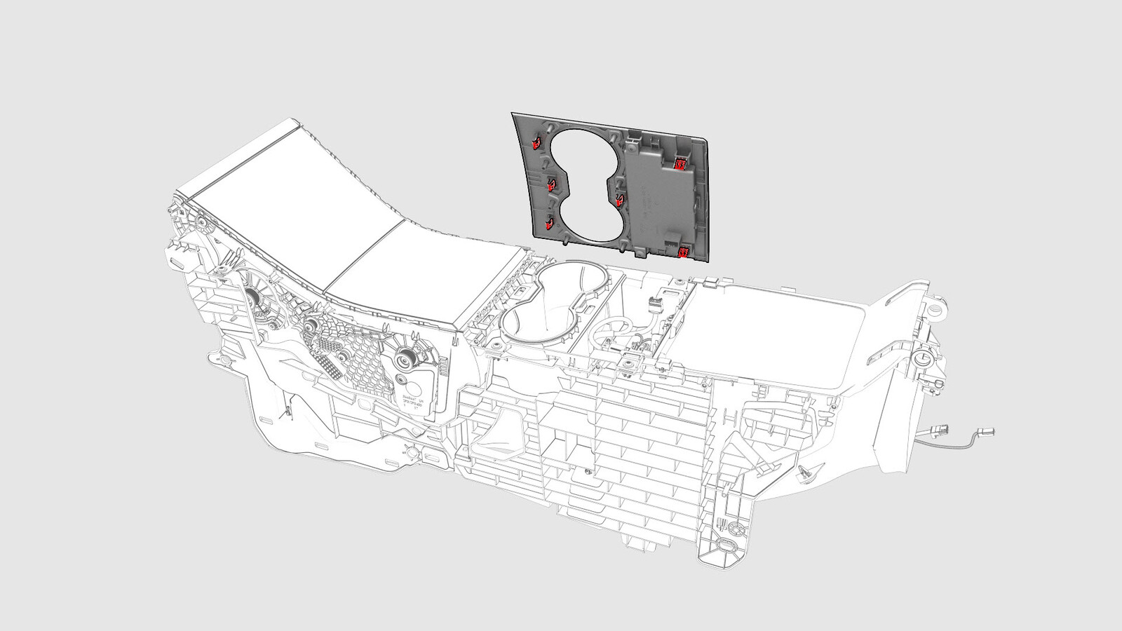- 松开将杯托总成固定到中控台的夹子,然后从中控台上拆下杯托总成。