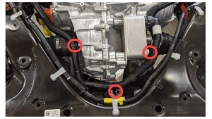松开将变流器和冷却液软管固定到后驱动单元的夹子
