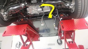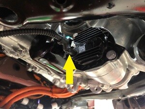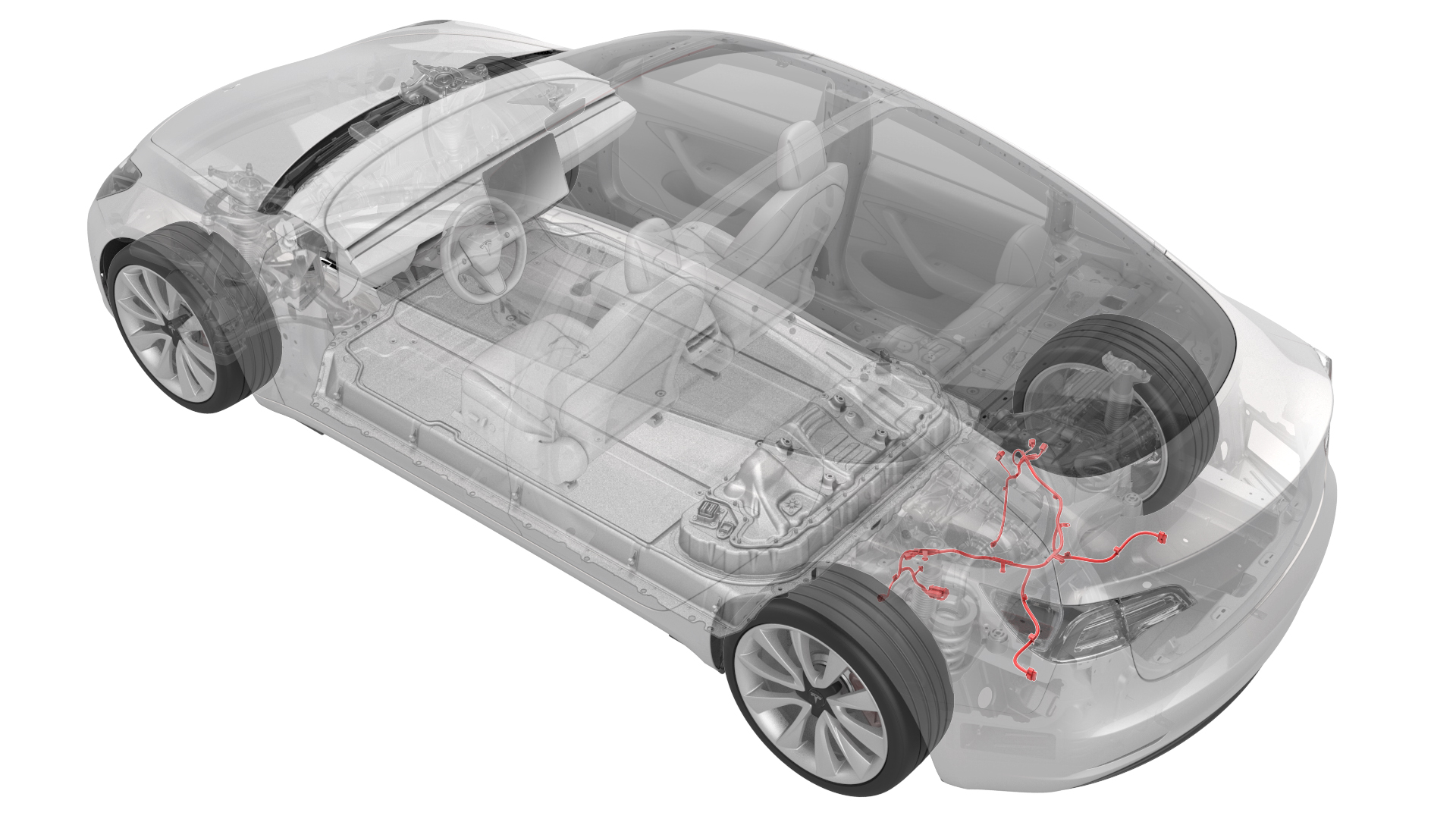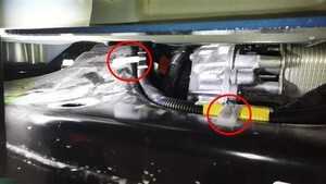 从后驱动单元与副车架之间的空隙中取出线束,然后从左至右将其取下