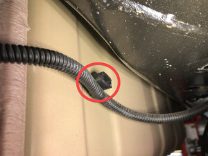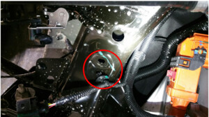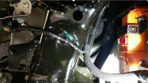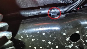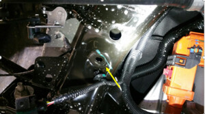 将后副车架线束安装到位,然后沿副车架左右侧固定夹子