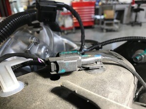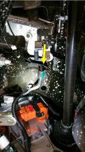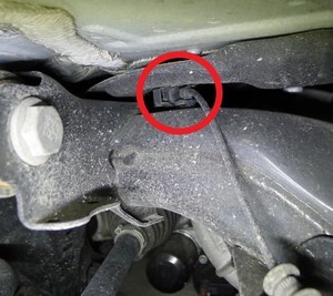 从副车架上拆下左后轮毂转速传感器线束连接器夹