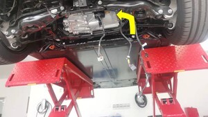 1 个连接器;松开锁片,使用机械手固定住副车架线束侧的连接器端部