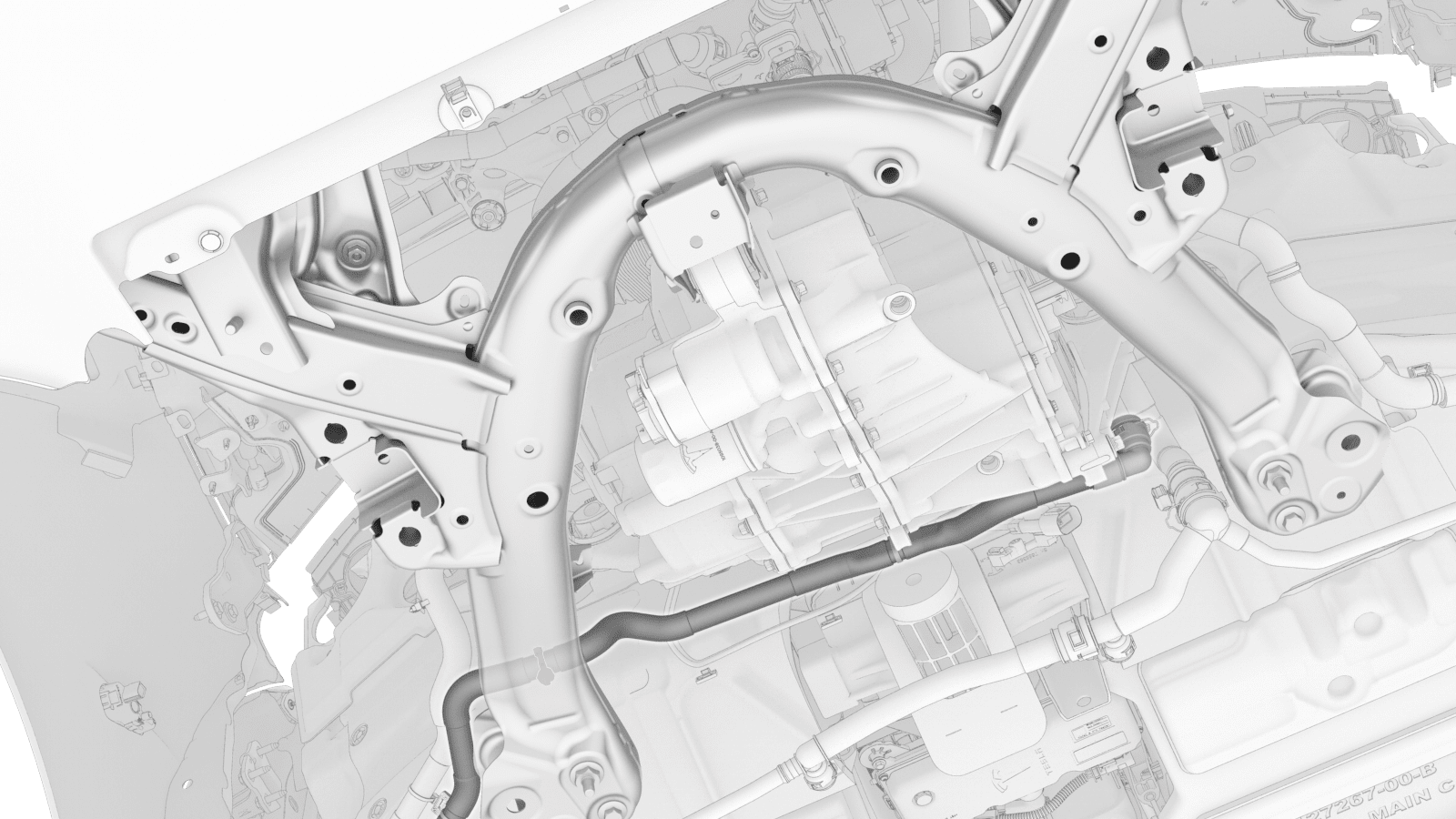 - 安装将前驱动单元逆变器入口软管固定到前副框架的夹子。