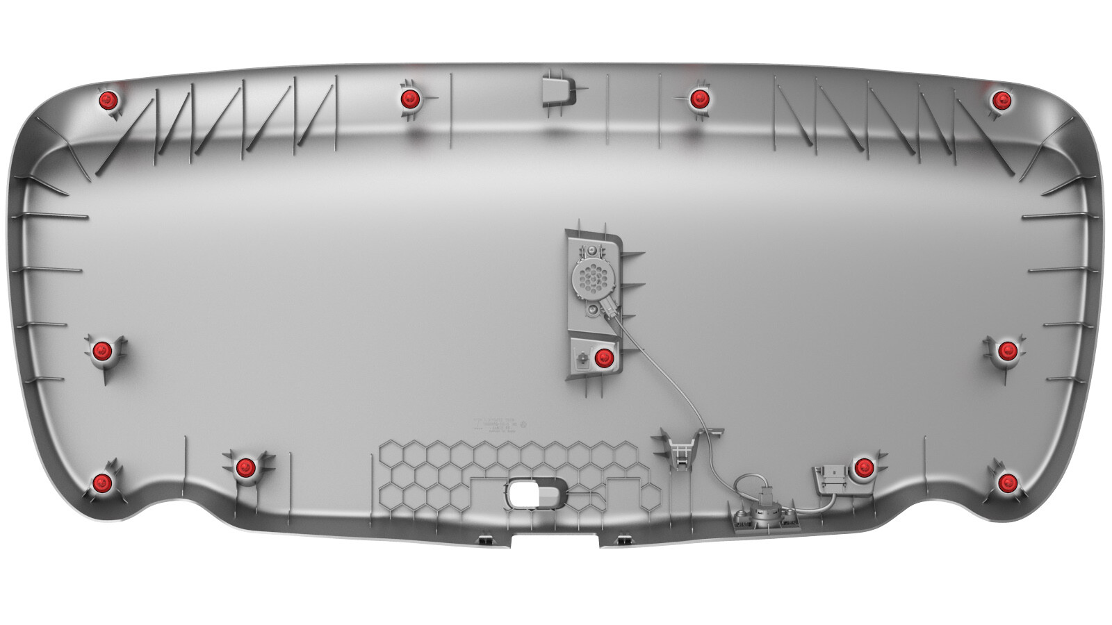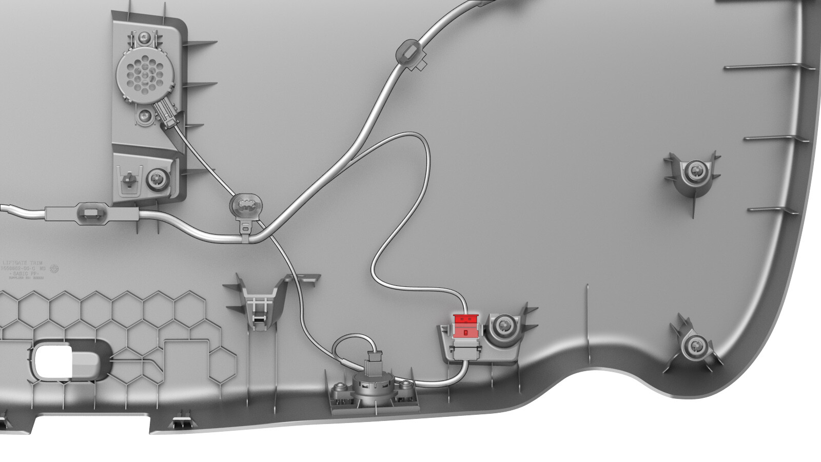 将电气线束连接到电动行李箱开关,将行李箱盖饰板锁片与行李箱盖上的槽对准,然后将夹子按入行李箱盖中。